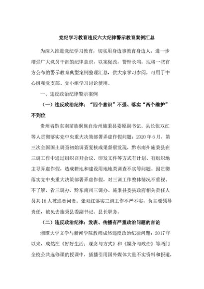 / 【七哥公文】2024年:党纪学习教育违反六大纪律警示教育案例汇总+更多免费公文+VX:QiGeGongWen2024