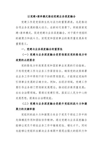 / 【七哥公文】2024年:以党建+清单模式推动党建业务深度融合+更多免费公文+VX:QiGeGongWen2024