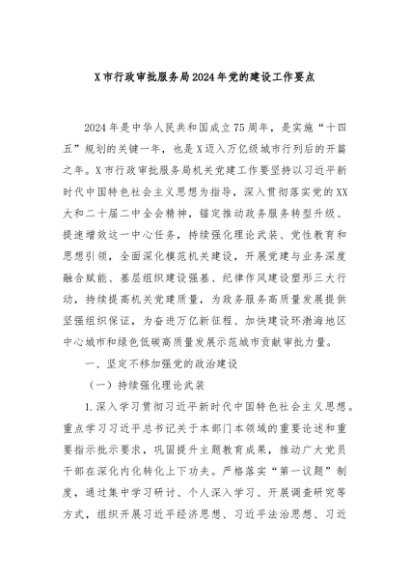 / 【七哥公文】2024年:X市行政审批服务局2024年党的建设工作要点+更多免费公文+VX:QiGeGongWen2024