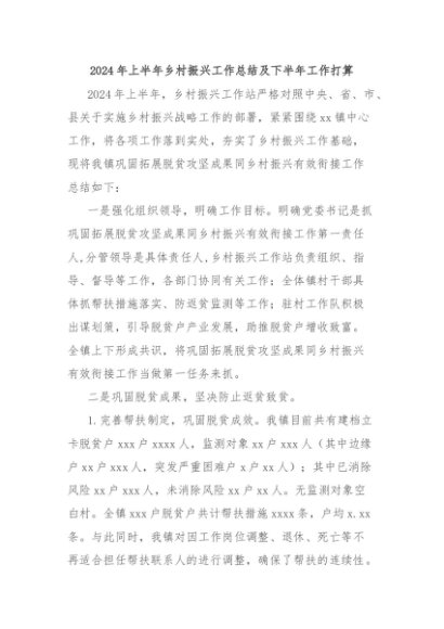 【七哥公文】2024年:2024年上半年乡村振兴工作总结及下半年工作打算+更多免费公文+VX:QiGeGongWen2024
