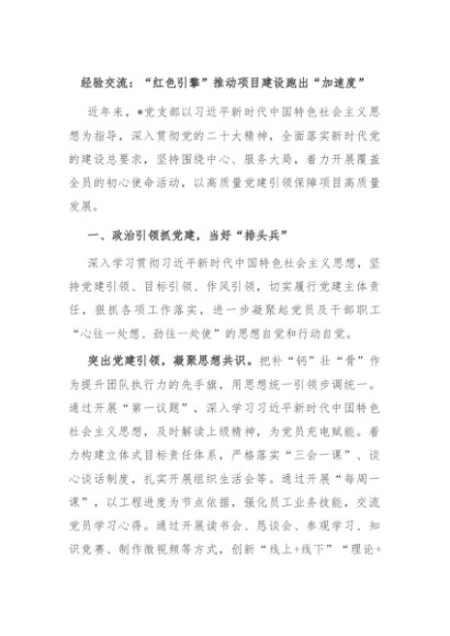 / 【七哥公文】2024年:经验交流:“红色引擎”推动项目建设跑出“加速度”+更多免费公文+VX:QiGeGongWen2024