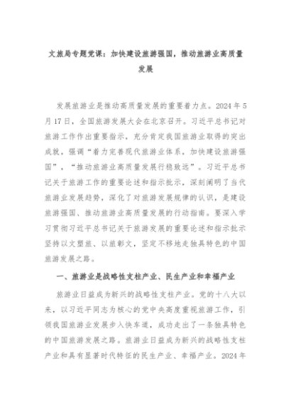 【七哥公文】2024年:文旅局专题党课:加快建设旅游强国,推动旅游业高质量发展+更多免费公文+VX:QiGeGongWen2024