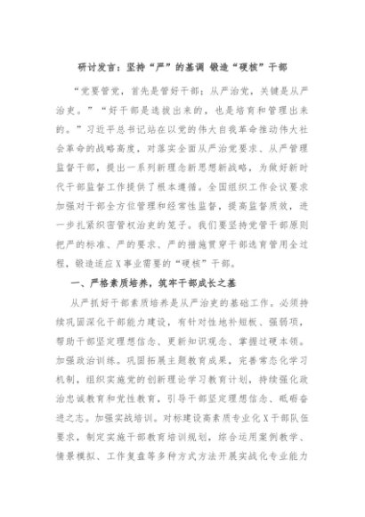 【七哥公文】2024年:研讨发言:坚持“严”的基调 锻造“硬核”干部+更多免费公文+VX:QiGeGongWen2024
