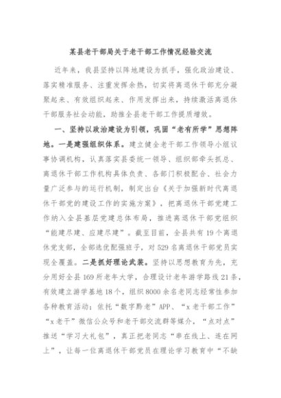 / 【七哥公文】2024年:某县老干部局关于老干部工作情况经验交流+更多免费公文+VX:QiGeGongWen2024