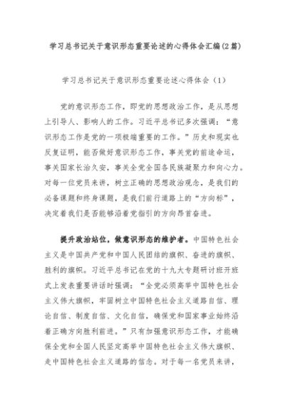 【七哥公文】2024年:(2篇)学习总书记关于意识形态重要论述的心得体会汇编+更多免费公文+VX:QiGeGongWen2024