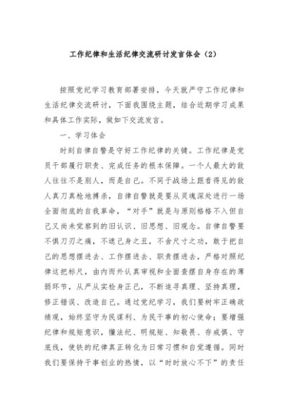 / 【七哥公文】2024年:工作纪律和生活纪律交流研讨发言体会(2)+更多免费公文+VX:QiGeGongWen2024