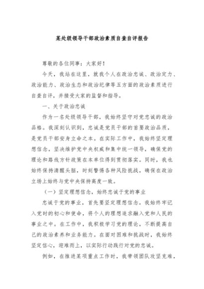 / 【七哥公文】2024年:某处级领导干部政治素质自查自评报告+更多免费公文+VX:QiGeGongWen2024