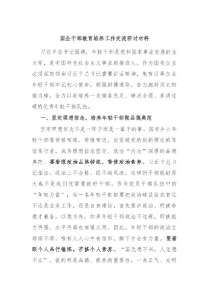 / 【七哥公文】2024年:国企干部教育培养工作交流研讨材料+更多免费公文+VX:QiGeGongWen2024