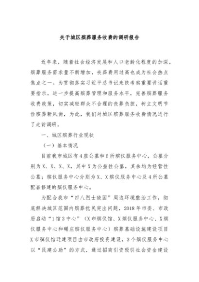 【七哥公文】2024年:关于城区殡葬服务收费的调研报告+更多免费公文+VX:QiGeGongWen2024