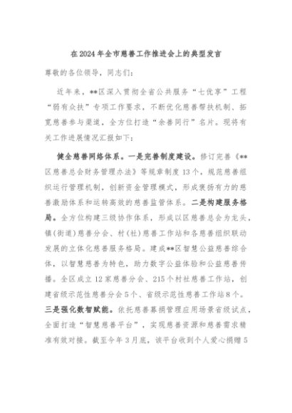 / 【七哥公文】2024年:在2024年全市慈善工作推进会上的典型发言+更多免费公文+VX:QiGeGongWen2024