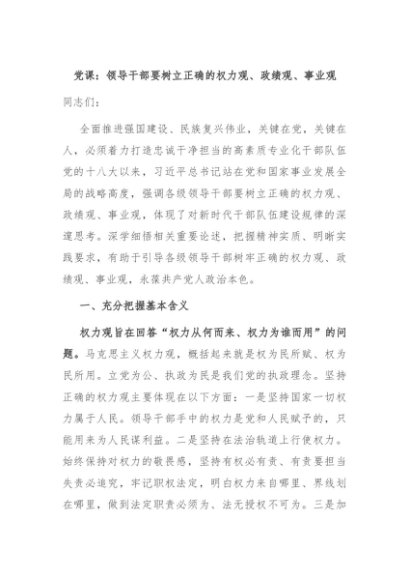 / 【七哥公文】2024年:党课:领导干部要树立正确的权力观、政绩观、事业观+更多免费公文+VX:QiGeGongWen2024