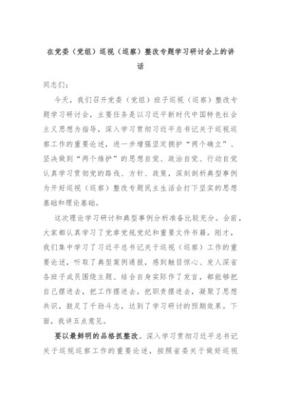 【七哥公文】2024年:在党委(党组)巡视(巡察)整改专题学习研讨会上的讲话+更多免费公文+VX:QiGeGongWen2024