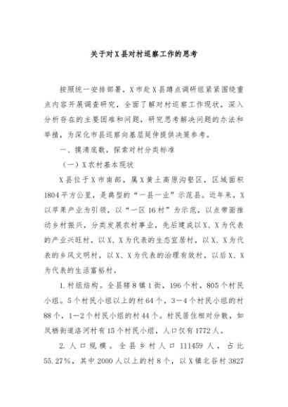 / 【七哥公文】2024年:关于对X县对村巡察工作的思考+更多免费公文+VX:QiGeGongWen2024