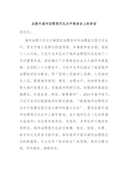 / 【七哥公文】2024年:在提升城市治理现代化水平推进会上的讲话+更多免费公文+VX:QiGeGongWen2024