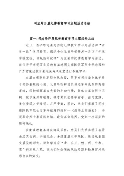 / 【七哥公文】2024年:司法局开展纪律教育学习主题活动总结+更多免费公文+VX:QiGeGongWen2024