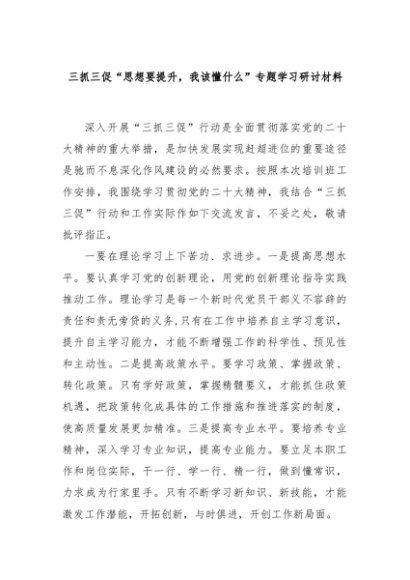 【七哥公文】2024年:三抓三促“思想要提升,我该懂什么”专题学习研讨材料+更多免费公文+VX:QiGeGongWen2024