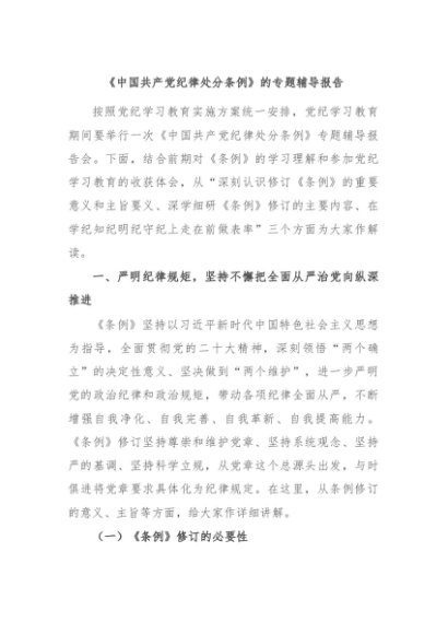 / 【七哥公文】2024年:《中国共产党纪律处分条例》的专题辅导报告+更多免费公文+VX:QiGeGongWen2024