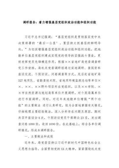 / 【七哥公文】2024年:调研报告:着力增强基层党组织政治功能和组织功能+更多免费公文+VX:QiGeGongWen2024