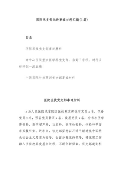 / 【七哥公文】2024年:(3篇)医院党支部先进事迹材料汇编+更多免费公文+VX:QiGeGongWen2024