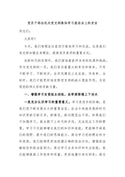/ 【七哥公文】2024年:党员干部在机关党支部集体学习座谈会上的发言+更多免费公文+VX:QiGeGongWen2024