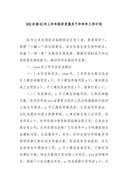 / 【七哥公文】2024年:XXX农场XX年上半年经济发展及下半年年工作计划+更多免费公文+VX:QiGeGongWen2024
