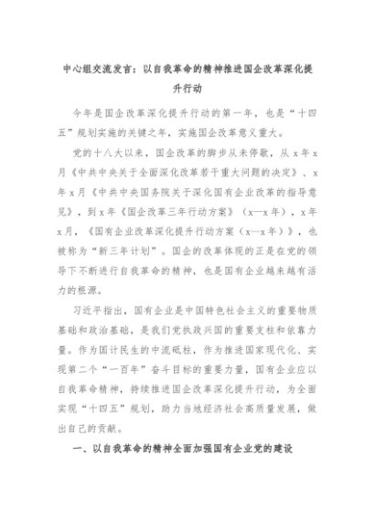 【七哥公文】2024年:中心组交流发言:以自我革命的精神推进国企改革深化提升行动+更多免费公文+VX:QiGeGongWen2024