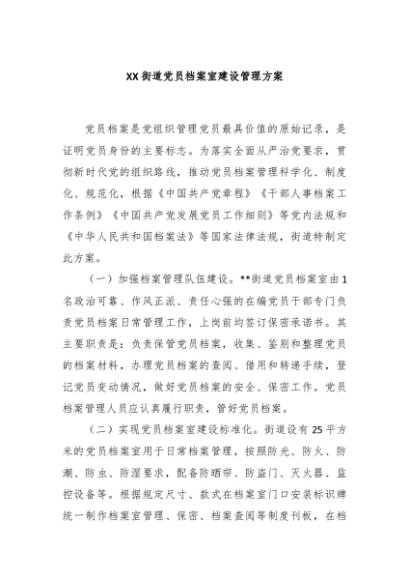 【七哥公文】2024年:XX街道党员档案室建设管理方案+更多免费公文+VX:QiGeGongWen2024