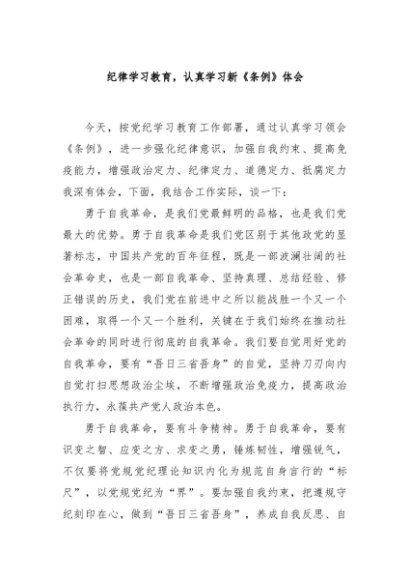 / 【七哥公文】2024年:纪律学习教育,认真学习新《条例》体会+更多免费公文+VX:QiGeGongWen2024