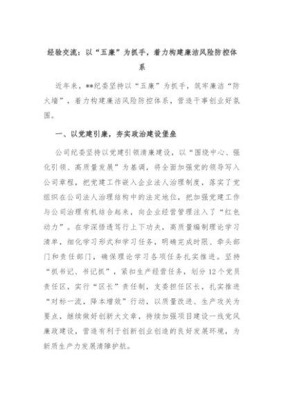 【七哥公文】2024年:经验交流:以“五廉”为抓手,着力构建廉洁风险防控体系+更多免费公文+VX:QiGeGongWen2024