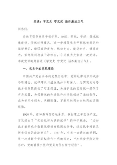 / 【七哥公文】2024年:党课:学党史 守党纪 涵养廉洁正气+更多免费公文+VX:QiGeGongWen2024