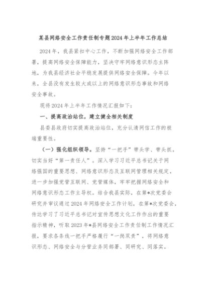 【七哥公文】2024年:某县网络安全工作责任制专题2024年上半年工作总结+更多免费公文+VX:QiGeGongWen2024