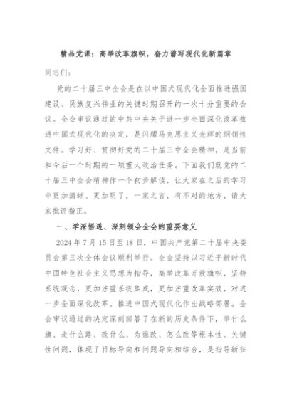 / 【七哥公文】2024年:精品党课:高举改革旗帜,奋力谱写现代化新篇章+更多免费公文+VX:QiGeGongWen2024