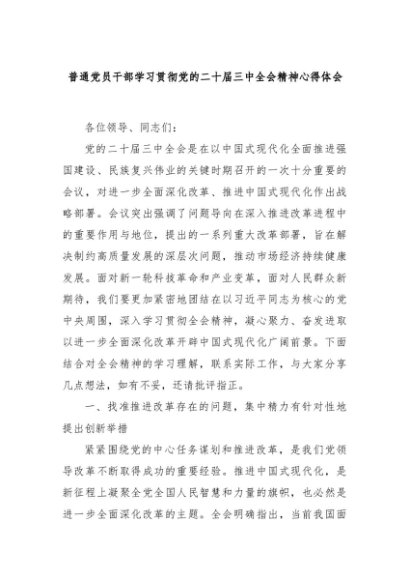 【七哥公文】2024年:普通党员干部学习贯彻党的二十届三中全会精神心得体会+更多免费公文+VX:QiGeGongWen2024
