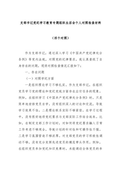 【七哥公文】2024年:支部书记党纪学习教育专题组织生活会个人对照检查材料(四个对照)+更多免费公文+VX:QiGeGongWen2024