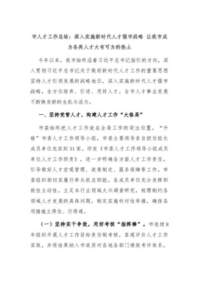 【七哥公文】2024年:市人才工作总结:深入实施新时代人才强市战略 让我市成为各类人才大有可为的热土+更多免费公文+VX:QiGeGongWen2024