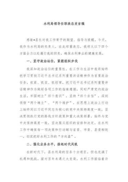 / 【七哥公文】2024年:水利局领导任职表态发言稿+更多免费公文+VX:QiGeGongWen2024