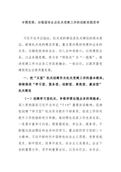 / 【七哥公文】2024年:专题党课:加强国有企业机关党建工作的创新实践思考+更多免费公文+VX:QiGeGongWen2024