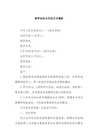 / 【七哥公文】2024年:拥军优抚合作协议书模板+更多免费公文+VX:QiGeGongWen2024