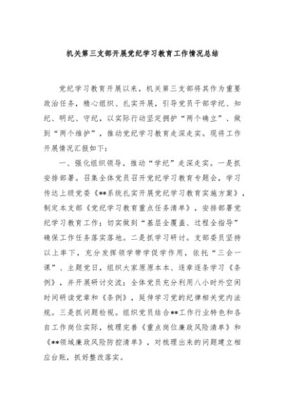 / 【七哥公文】2024年:机关第三支部开展党纪学习教育工作情况总结+更多免费公文+VX:QiGeGongWen2024