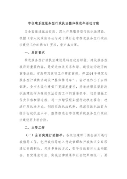 / 【七哥公文】2024年:市住建系统服务型行政执法整体推进年活动方案+更多免费公文+VX:QiGeGongWen2024