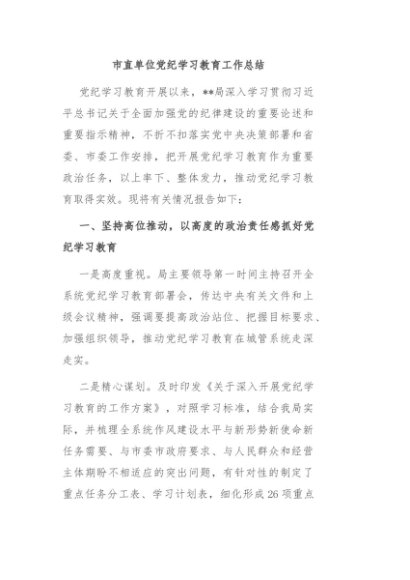 / 【七哥公文】2024年:市直单位党纪学习教育工作总结+更多免费公文+VX:QiGeGongWen2024