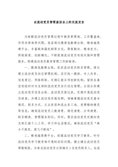 / 【七哥公文】2024年:在流动党员管理座谈会上的交流发言+更多免费公文+VX:QiGeGongWen2024