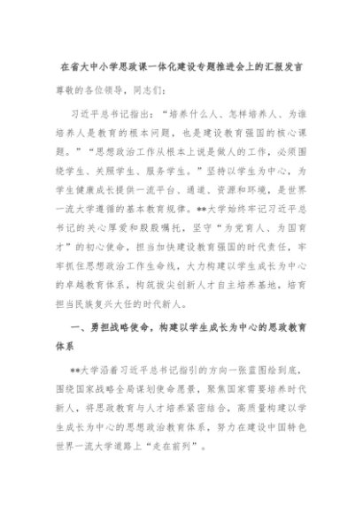 【七哥公文】2024年:在省大中小学思政课一体化建设专题推进会上的汇报发言+更多免费公文+VX:QiGeGongWen2024