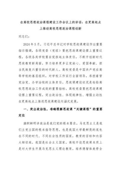 【七哥公文】2024年:在高校思想政治课程建设工作会议上的讲话:在更高起点上推动高校思想政治课程创新+更多免费公文+VX:QiGeGongWen2024