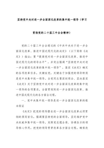 【七哥公文】2024年:坚持党中央对进一步全面深化改革的集中统一领导(学习贯彻党的二十届三中全会精神)+更多免费公文+VX:QiGeGongWen2024