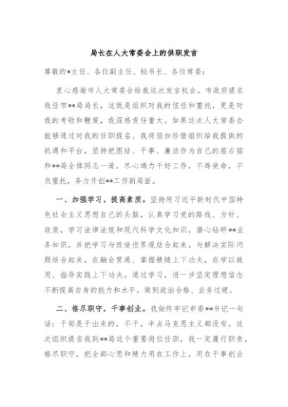 / 【七哥公文】2024年:局长在人大常委会上的供职发言 (1)+更多免费公文+VX:QiGeGongWen2024