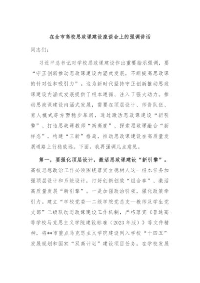 / 【七哥公文】2024年:在全市高校思政课建设座谈会上的强调讲话+更多免费公文+VX:QiGeGongWen2024