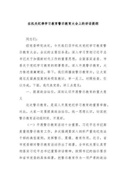/ 【七哥公文】2024年:在机关纪律学习教育警示教育大会上的讲话提纲+更多免费公文+VX:QiGeGongWen2024