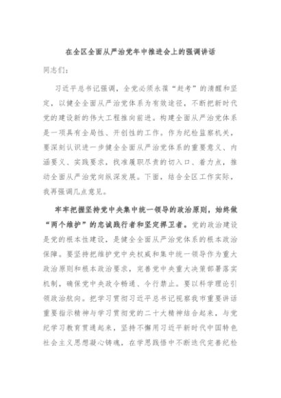 / 【七哥公文】2024年:在全区全面从严治党年中推进会上的强调讲话+更多免费公文+VX:QiGeGongWen2024