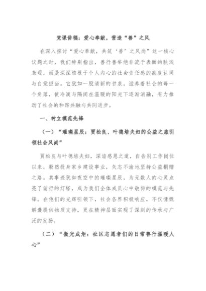 / 【七哥公文】2024年:党课讲稿:爱心奉献,营造“善”之风+更多免费公文+VX:QiGeGongWen2024